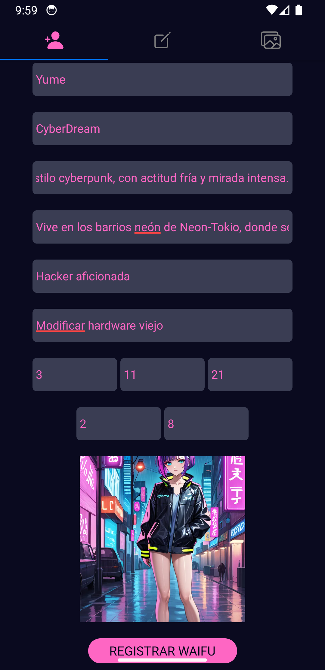 - ✨ Perfiles únicos para cada waifu (lore, historia, pasatiempos, etc)